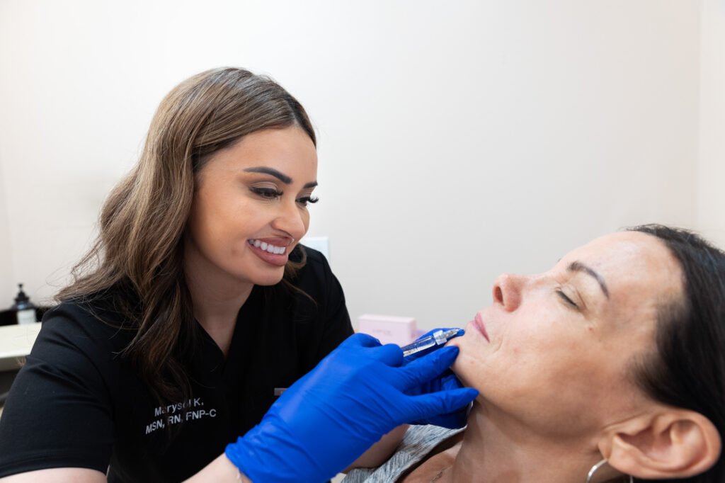 We cleanse your skin and apply a numbing cream before precisely injecting lip filler beneath your lips, giving you instant volume and definition.